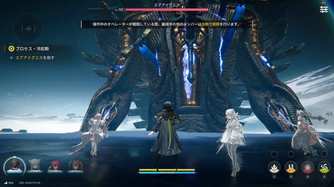 なんかこちらも対抗して仲間が出てきて、ボスバトル始まった。ボスの名前はエアアイグニス。