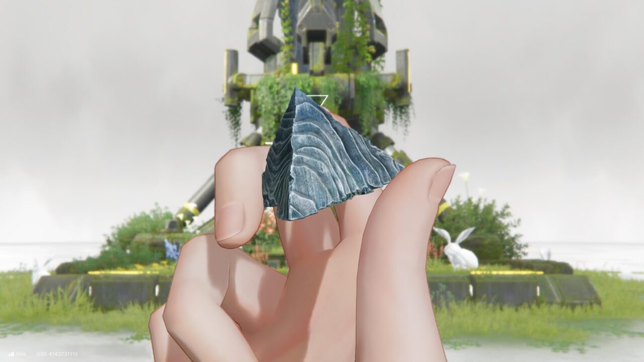 小石を拾った。これ空に浮かんでた三角錐の小さいやつ?素敵な石だ。グッズ化して売り出してくれないかな。きちんと重さがあるやつ。買います。
